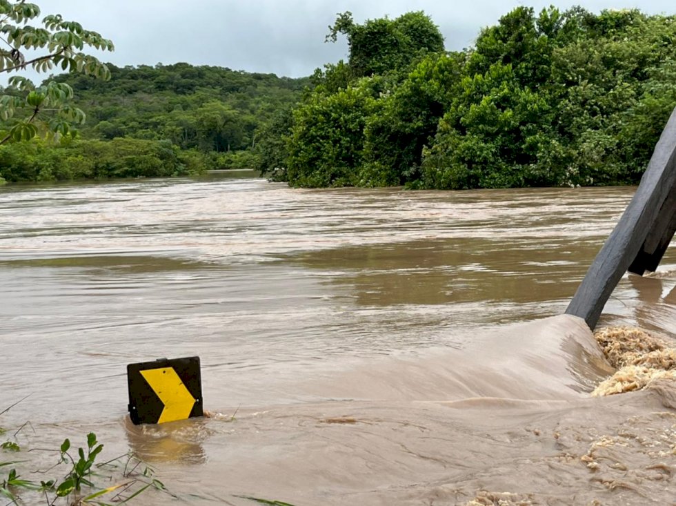 Nível do rio sobe 7 metros e faz ponte 'sumir' na divisa de municípios