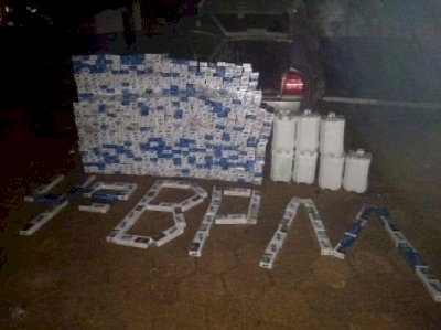 No interior do automóvel, foi localizada grande quantidade de cigarros e agrotóxicos contrabandeados. O motorista não foi encontrado.