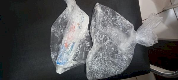 Durante a revista aos objetos, foi encontrado envelopes contendo a droga K4, dentro de um tubo de creme dental.
