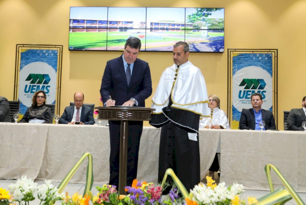 O governador Eduardo Riedel participou na noite desta terça-feira (26) da posse do reitor da Uems (Universidade Estadual de Mato Grosso do Sul), Laércio Alves de Carvalho, que ficará à frente da instituição por mais quatro anos. Durante o evento, no auditório central da Uems em Dourados, Riedel destacou o papel inclusivo e transformador da universidade na história da educação superior do Estado.