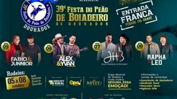 Dourados, no interior do Mato Grosso do Sul, será o palco de uma das mais tradicionais Festas do Peão, estamos falando da 39ª Festa do Peão de Boiadeiro de Dourados, que será realizada entre os dias 5 e 8 de outubro. O evento que faz parte do calendário oficial do município, acontecerá no Parque de Exposição João Humberto de Carvalho, e neste ano será com entrada franca todos os dias.