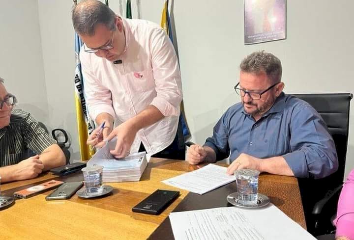 O relatório com toda a receita orçamentária prevista para o próximo ano foi entregue pessoalmente pelo prefeito Alan Guedes (PP) ao presidente da Casa de Leis, Laudir Munaretto (MDB).