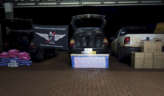 Na madrugada desta terça-feira (9/12), uma equipe da PMR (Polícia Militar Rodoviária) durante fiscalização na MS-164, em Maracaju, realizou três apreensões distintas. A primeira abordagem ocorreu a um veículo Fiat Palio, onde foram encontrados 250 pacotes de cigarros estrangeiros e 55 pneus de diversas medidas, ambos sem documentação fiscal.