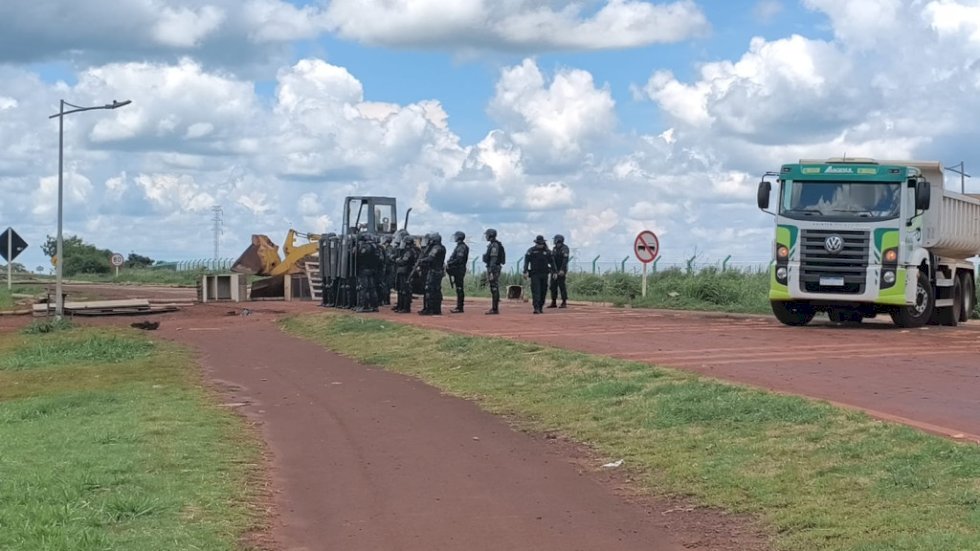 A reportagem está no local e acompanhou a chegada dos agentes que, sem resistência por parte dos manifestantes, conseguiram desobstruir a rodovia, usando uma patrola para retirar os pedaços de madeira e até móveis que foram colocados - veja o vídeo acima.