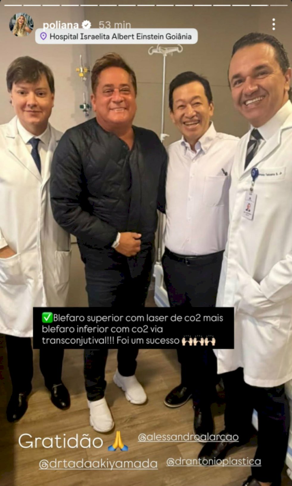 “Blefaro superior com lase de cO2 mais blefaro inferior com cO2 via transconjutival! Foi um sucesso!”, falaram sobre o que foi feito e como o cantor está.