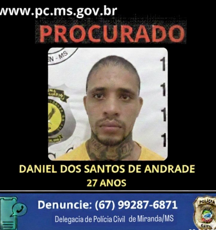 Permanecem foragidos os indivíduos Alex Paniago Almeida e Daniel dos Santos de Andrade. A Polícia Civil solicita colaboração da população para que sejam encaminhadas informações acerca do paradeiro dos criminosos. As denúncias podem ser feitas através do número (67) 99223-5802, sendo mantido o sigilo da fonte.