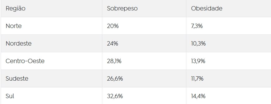 No Sudeste, Sul e Centro-Oeste, sobrepeso é o que chama mais atenção