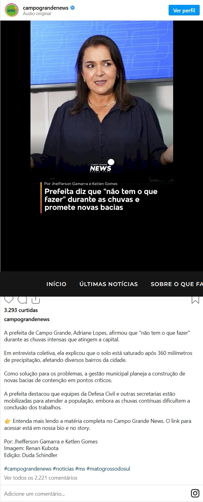 De fato, Campo Grande enfrenta período com chuvas acima da média neste início de 2026, mas a fala da prefeita soa de maneira irônica, principalmente porque seu mandato é marcado pelos buracos nas ruas. Seja na estiagem ou no período chuvoso, a administração de Adriane não consegue fazer o básico.