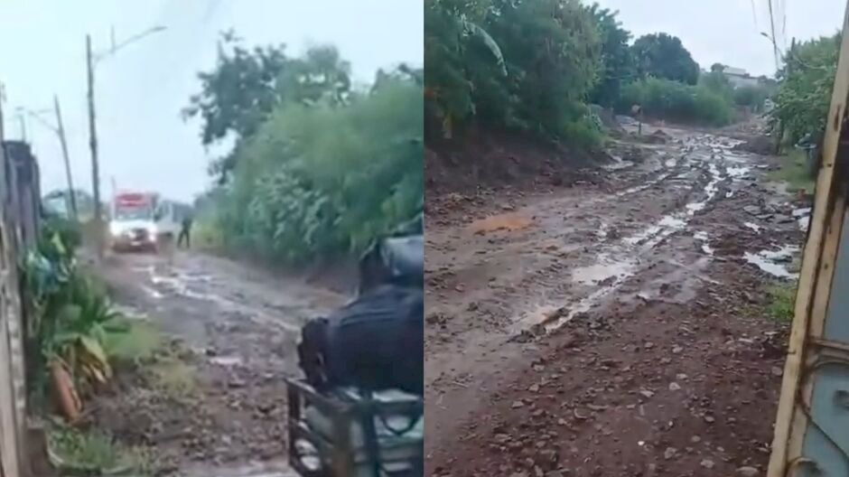 No entanto, devido às condições da rua — marcada por lama, buracos e trechos praticamente intransitáveis — a ambulância não conseguiu chegar até a residência. O veículo acabou ficando atolado antes de alcançar a casa do paciente.