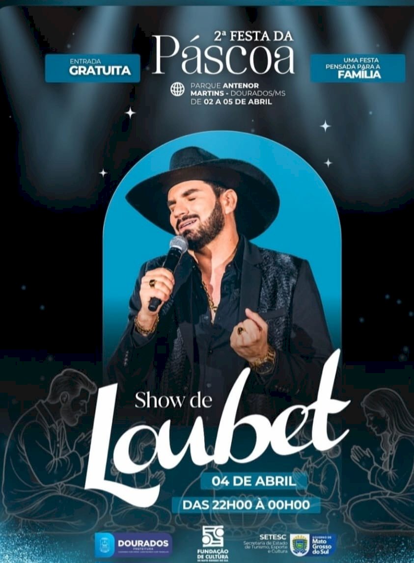 A 2ª Festa da Páscoa, que acontece de 2 a 5 de abril, no Parque Antenor Martins, promovida pela Prefeitura de Dourados, levará ao público uma programação musical diversificada, reunindo diferentes estilos e proporcionando momentos de celebração, lazer e cultura para toda a família. Durante os três dias de evento, artistas sobem ao palco para animar douradenses e visitantes da região, consolidando a festa como um dos principais eventos do calendário municipal.