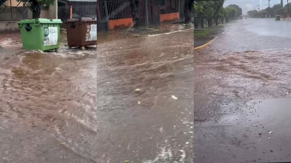 Uma forte chuva atingiu São Gabriel do Oeste na tarde desta quinta-feira (2), acompanhada de ventos de mais de 62 km/h. Diversas ruas da cidade apresentaram alagamentos e até queda de granizo foi registrada.