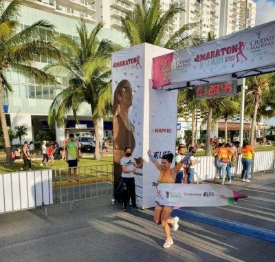 A educadora física Gisele Aparecida Bittencourt Venâncio, que mora em Dourados, venceu a Meia Maratona Internacional em Cancun, realizada em seis de março de 2022, em homenagem ao Dia das Mulheres.