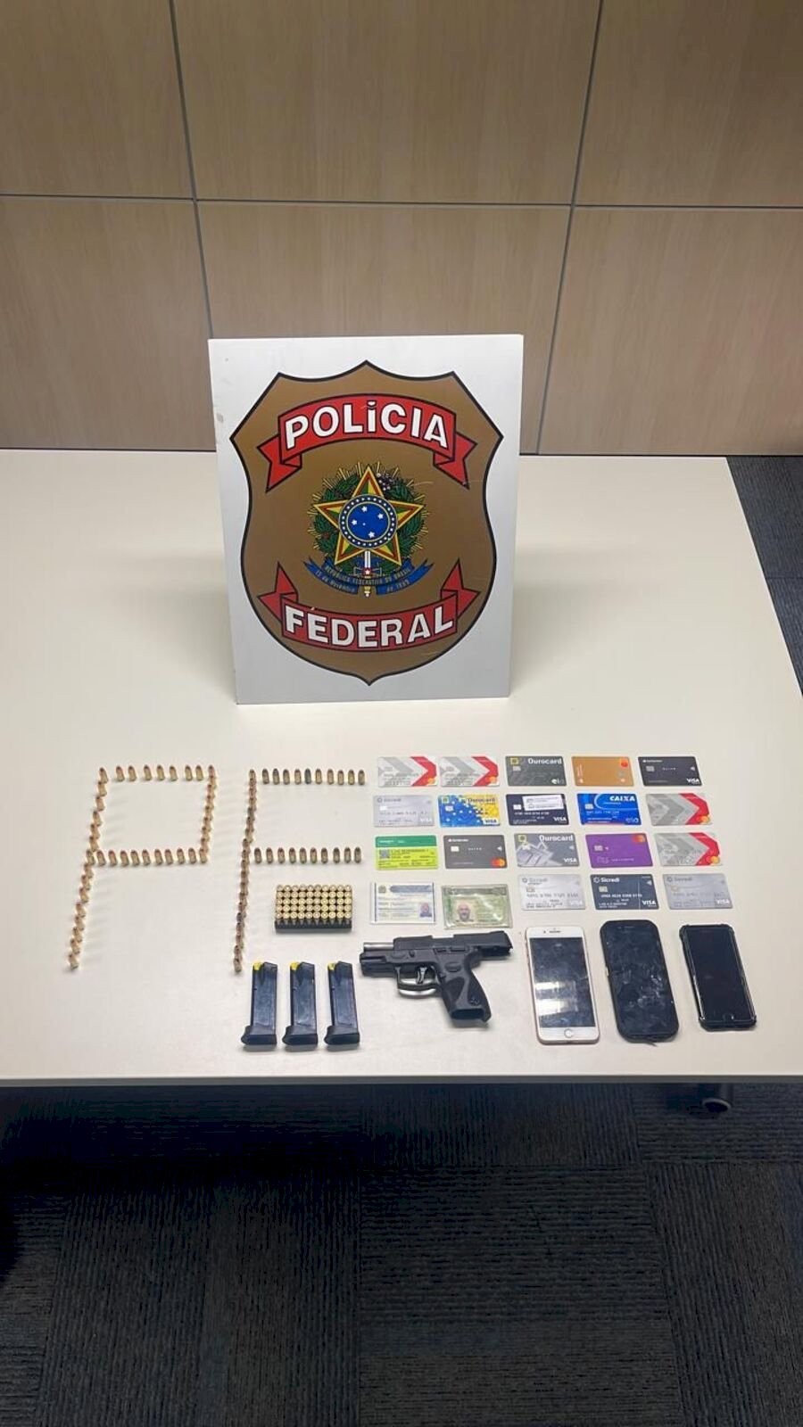 Aparelhos de telefones celulares, veículos, uma motocicleta de luxo, diversos cartões bancários, documentos falsos, uma arma de fogo e diversas munições foram apreendidas ao longo dos trabalhos.