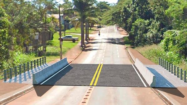 Além disso, o projeto encaminhado para as empresas apresenta uma ponte com infraestrutura e mesoestrutura moldada in loco e a mesa da ponte pré moldada, com 12 metros de comprimento e 16m de largura, sendo 10m de pista de rolamento e 3m de calçada em cada lado de passeio público.