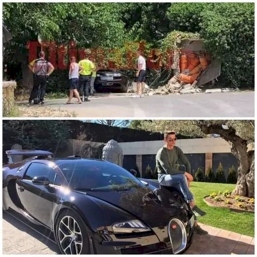 O carro de Cristiano Ronaldo se envolveu em um acidente no início desta semana, em Palma de Maiorca, Espanha, onde o jogador passa férias com sua família. O português não estava à bordo da Bugatti Veyron no momento.