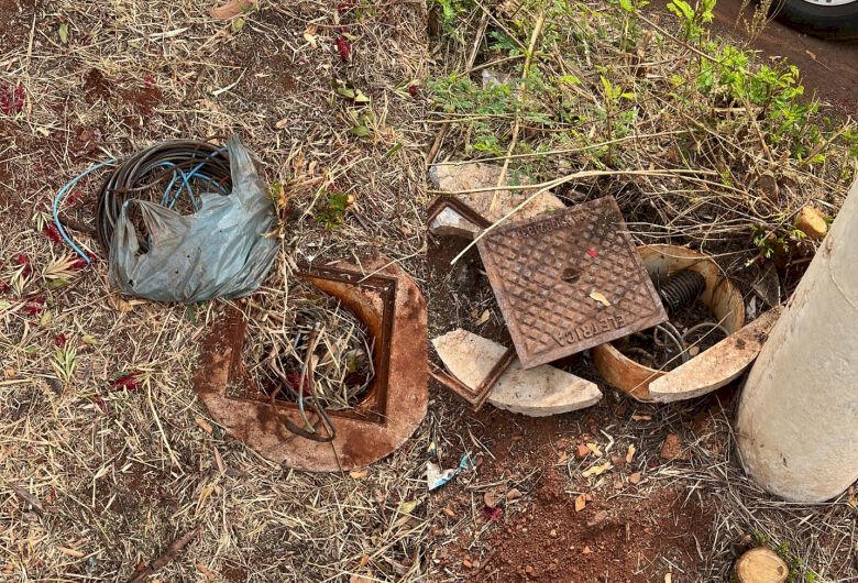 Em vistoria no local os guardas constaram que as tampas de concreto de cinco pontos de iluminação foram quebradas e os fios cortados.