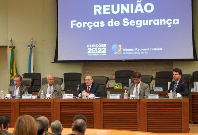 O Tribunal Regional Eleitoral de Mato Grosso do Sul (TRE-MS) reuniu-se com representantes das Forças de Segurança de Mato Grosso do Sul na manhã de segunda-feira (22/8) para alinhamento do plano de atuação para as Eleições 2022. O primeiro turno está agendado para 2 de outubro e o segundo, no dia 30 do mesmo mês.