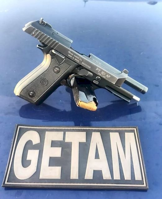 Os policiais localizaram o autor e deram ordem de abordagem, momento em que ele fugiu, mas foi alcançado pouco depois. Na revista pessoal não foi encontrado nada de ilícito, mas ao averiguar um veículo VW Polo que estava próximo ao indivíduo, os militares encontraram a pistola .40 com dez munições intactas.