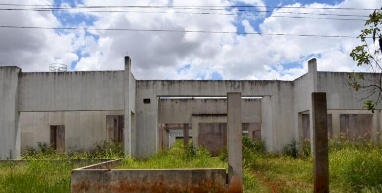 Parada há quase dois anos, obra de Ceim está tomada pelo mato e vira 'lixão'