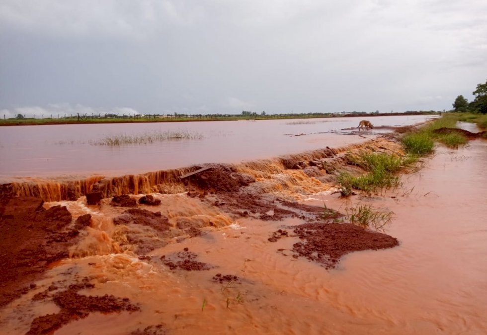 Depois do grande volume de chuva entre a noite de quinta-feira (23), e a manhã desta sexta (24), em Dourados, uma barragem feita nas dependências Aeroporto Internacional Francisco de Matos Pereira, para escoar água da pista, transbordou e deixou moradores de um sítio completamente ilhados.
