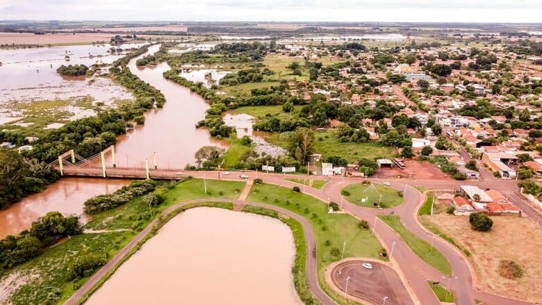 Ilha do Sol fica submersa com a cheia do Rio Dourados que transborda em Fátima do Sul