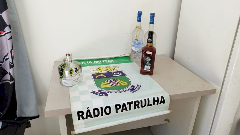 A Polícia Militar abordou o homem, de 29 anos, e com ele foram localizadas duas garrafas de vodca, uma de cachaça e uma de whisky.