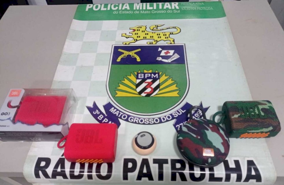 O ladrão havia levado quatro caixas de som JBL e uma caixa de som de outra marca e modelo.