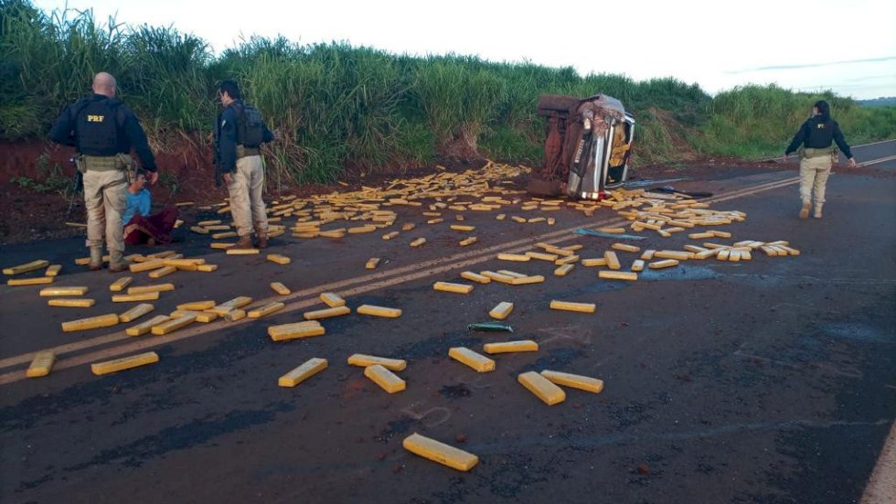 Traficante capota picape abarrotada de droga a caminho de Dourados