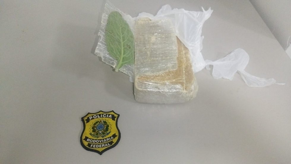 Na mochila dele, policiais rodoviários federais encontraram um tablete de pasta base de cocaína pesando 1,03 kg. Flagrado, ele apresentou o documento em nome do irmão, mas as autoridades desconfiaram e na busca detalhada descobriram a identidade verdadeira.