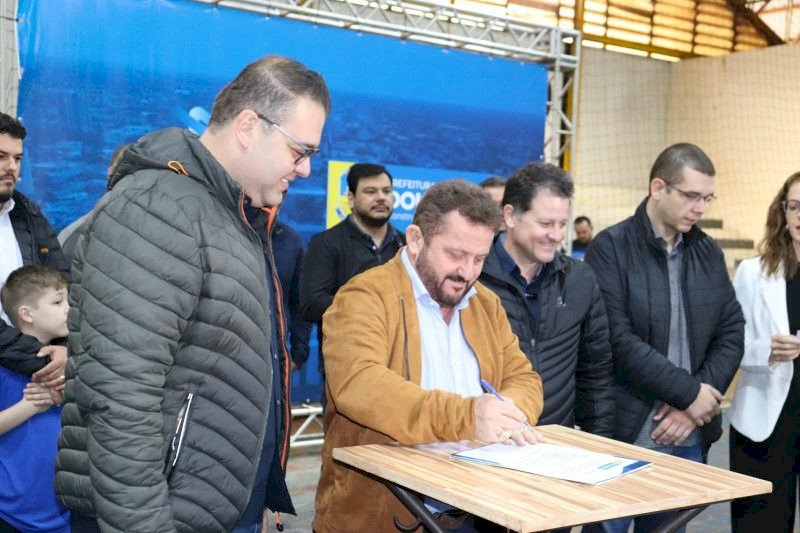 O prefeito assinou ainda a ordem de serviço para execução de bases de arenas esportivas. Serão 6 arenas do programa “MS Bom de Bola”, que acontece através de um convênio com o governo do Estado.