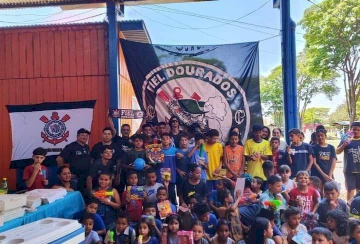 Fechamos com a Casa da Amizade e conseguimos atender as crianças hoje. Foram doados brinquedos, cachorro-quente e picolé para os presentes", disse Leonor Souza, um dos membros da direção da torcida do Corinthians em Dourados.