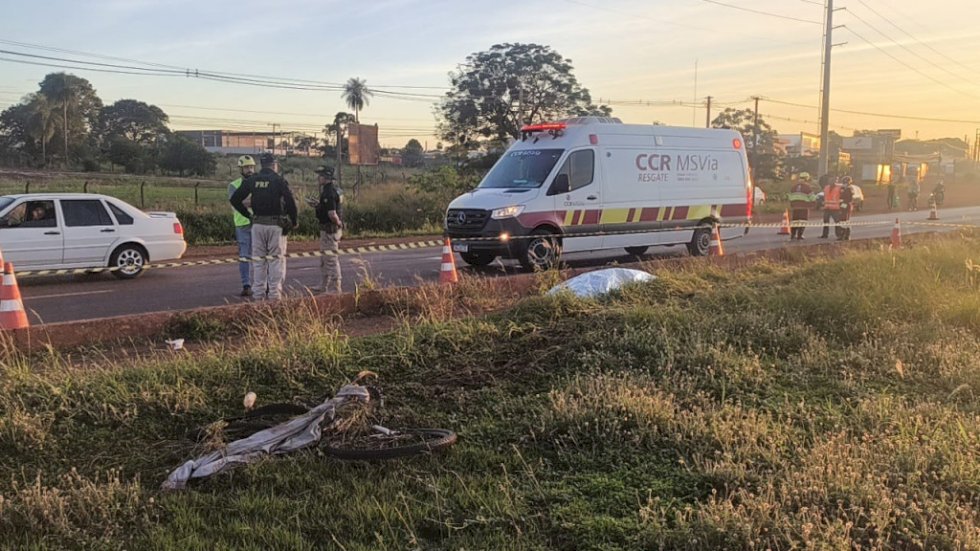 Ciclista venezuelano, de 46 anos, identificado como Anyelo Neptali Lorant Ramos, morreu na manhã deste sábado (17/5), após ser atropelado por um micro-ônibus na BR-163, em Dourados. O corpo da vítima ficou com as vísceras expostas na pista.