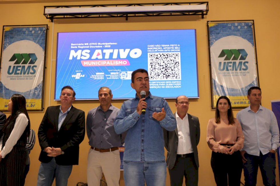 Anfitrião do seminário MS Ativo, que acontece nesta quarta-feira (9) no auditório da Universidade Estadual de Mato Grosso do Sul (Uems) e reúne prefeitos e autoridades de 14 municípios da Grande Dourados, o prefeito Marçal Filho destacou o evento como oportunidade para que o governo tome ciência das necessidades de cada ente e defendeu a união de esforços para que, juntos, estado e municípios, alcancem soluções.