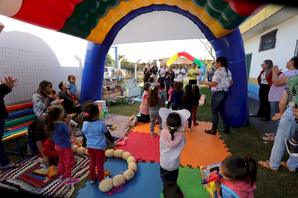 A Prefeitura de Dourados, por meio da Secretaria Municipal de Educação (Semed) vai entregar 22 mil livros e 11 Tendas da Leitura, além de brinquedos para mais de 30 unidades escolares nos próximos dias. O Centro de Educação Infantil Municipal (Ceim) Dejanira Queiróz Teixeira, no Jardim Santa Maria, foi o primeiro a receber os itens na manhã desta segunda-feira (14) e o prefeito Marçal Filho participou da entrega, em um momento marcado por muita alegria e arte. Com pipoca e picolés, as crianças receberam os novos materiais e ficaram muito empolgadas com os itens educativos e com a apresentação de contação de histórias.