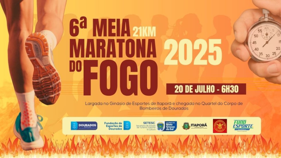 Os apaixonados por corrida contam com um grande evento no dia 20 de julho: a Meia Maratona do Fogo. A ação é retomada após sete anos e promete aquecer o cenário esportivo local. O trecho da competição é entre Dourados e Itaporã e a largada é às 6h30, no Ginásio de Esportes de Itaporã, com chegada no quartel do Corpo de Bombeiros, na Avenida Presidente Vargas, região central de Dourados.