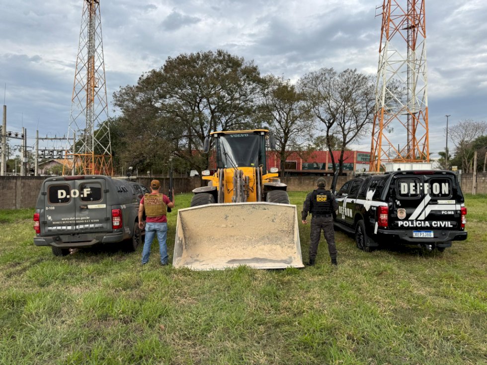 Ação entre policiais do DOF (Departamento de Operações de Fronteira) e policiais civis da Defron (Delegacia Especializada em Repressão aos Crimes de Fronteira), no sábado (23/8), em Aral Moreira, resultou na recuperação de uma máquina pá carregadeira, da marca Volvo, furtada no ano passado, em Caarapó. Na ação, um adolescente de 17 anos foi apreendido.