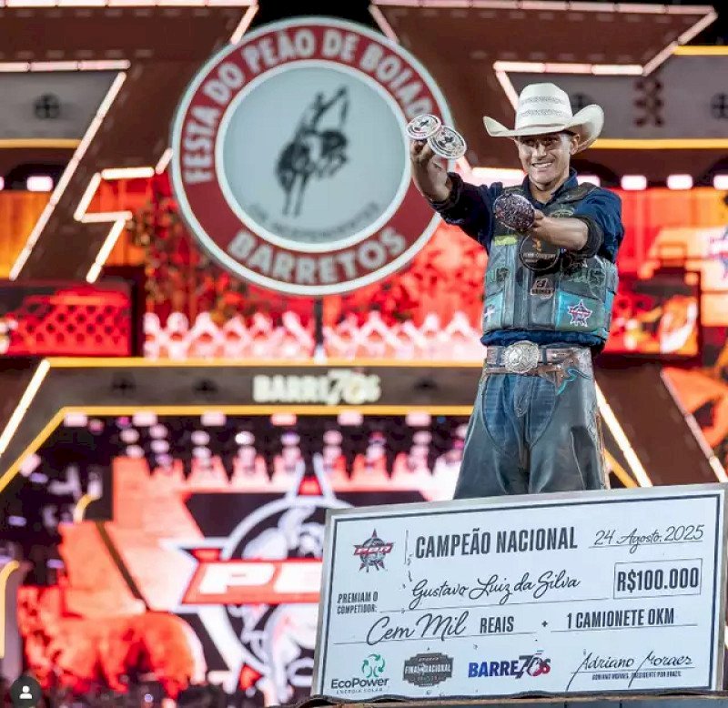 O peão sul-mato-grossense Gustavo Luiz da Silva, de apenas 19 anos, fez história ao conquistar o título do Campeonato Brasileiro de Montaria em Touros da PBR (Professional Bull Riders), realizado durante a 70ª Festa do Peão de Barretos, no interior de São Paulo. Natural de Inocência, região norte de MS, o jovem talento assegurou o título antes mesmo da grande final da competição.