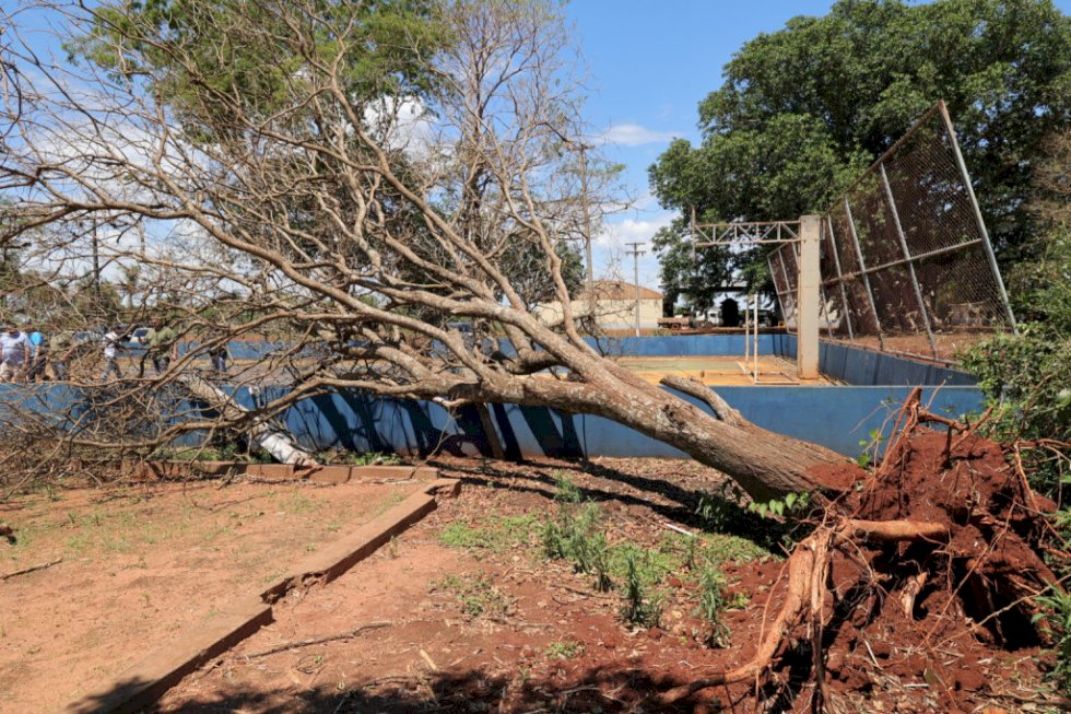 O alambrado da quadra de esportes tombou, um poste de iluminação caiu e várias árvores ao redor da escola foram arrancadas pela força do vento. Além disso, a fiação elétrica da unidade foi comprometida e precisará ser substituída.