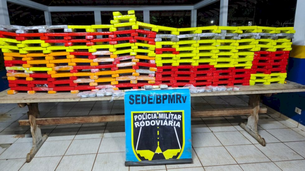 Conforme a ocorrência, os policiais abordaram o carro e perceberam forte odor de entorpecente. Ao verificar o porta-malas — inicialmente informado pelo condutor como “estragado” — os militares localizaram grande quantidade da droga.