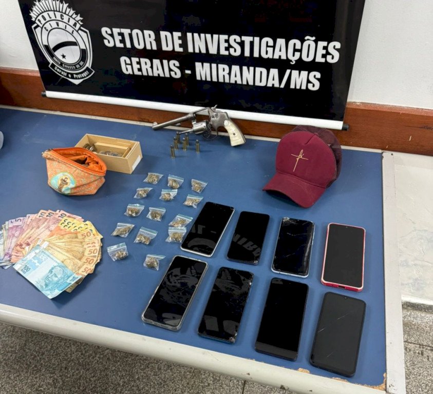 Na data do ocorrido, igualmente com apoio do 2º Pelotão da Polícia Militar de Miranda, foi preso o indivíduo D.C.S., de 40 anos, em posse de uma arma de fogo.