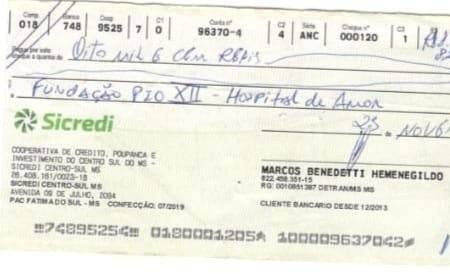 Na petição, a instituição diz que o ex-prefeito emitiu um cheque, em 25 de novembro de 2023, no valor de R$ 8,1 mil para quitar a dívida contraída no leilão beneficente. O hospital tentou efetuar o depósito, mas foi impedido por motivos da alínea 11/12 (cheque sem fundo). A ação foi protocolada no TJMS (Tribunal de Justiça de Mato Grosso do Sul) em 24 de dezembro de 2025.