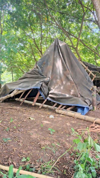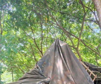 Durante a fiscalização, a equipe localizou uma ilha utilizada de forma irregular como acampamento de pesca. No local, foram encontradas estruturas cobertas com lonas, uma churrasqueira construída em concreto e uma pequena ponte de madeira, caracterizando ocupação permanente em área onde esse tipo de intervenção é proibida pela legislação ambiental.