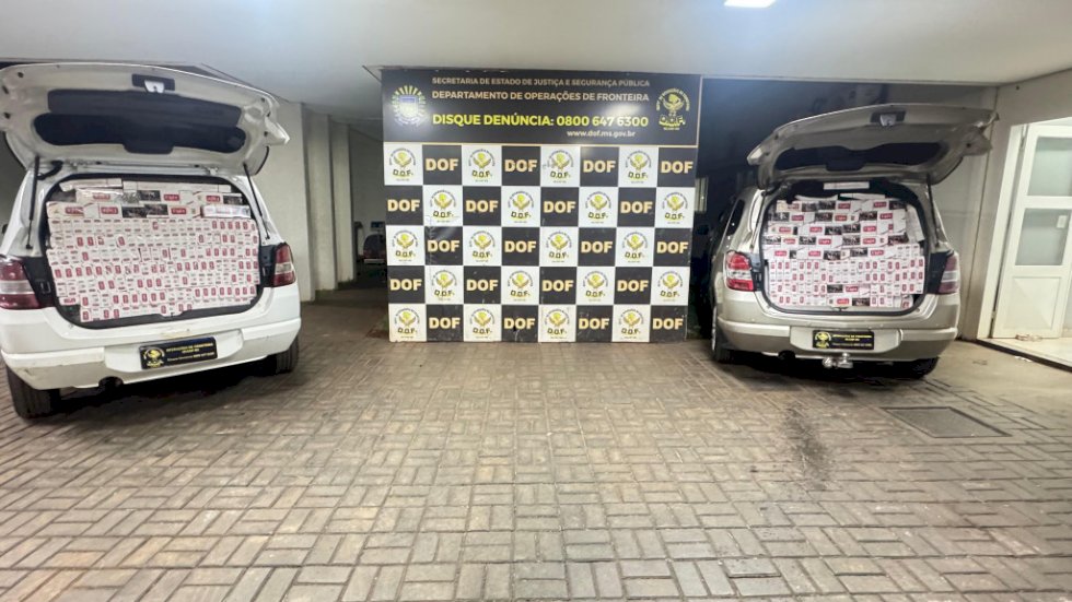 Policiais do DOF (Departamento de Operações de Fronteira) apreenderam neste domingo (1/2), no distrito de Vila Vargas, em Dourados, dois veículos carregados com 4.400 pacotes de cigarros contrabandeados do Paraguai.