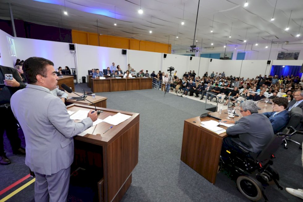 Durante o pronunciamento, interrompido várias vezes por aplausos da plateia que lotou as dependências da Casa de Leis, Marçal Filho ressaltou avanços concretos nas políticas públicas e destacou a condução responsável das finanças públicas, enfatizando que o equilíbrio fiscal é fundamental para manter investimentos, ampliar serviços e assegurar a sustentabilidade da gestão. Ele reforçou que o planejamento e a transparência seguem como pilares da administração municipal.