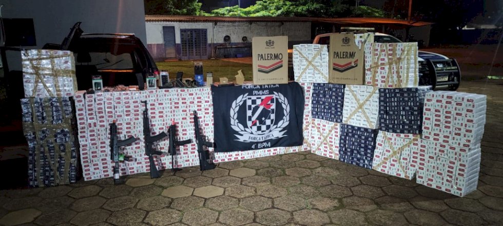 Carga de cigarros e armamentos de airsoft contrabandeados do Paraguai foi apreendida pela Força Tática da PM (Polícia Militar) na noite desta quarta-feira (4/2), em Ponta Porã. A ocorrência teve início por volta das 21h30, quando os policiais realizavam patrulhamento preventivo e avistaram um GM Corsa Sedan e um Ford Eco Sport trafegando em alta velocidade e com sobrecarga.