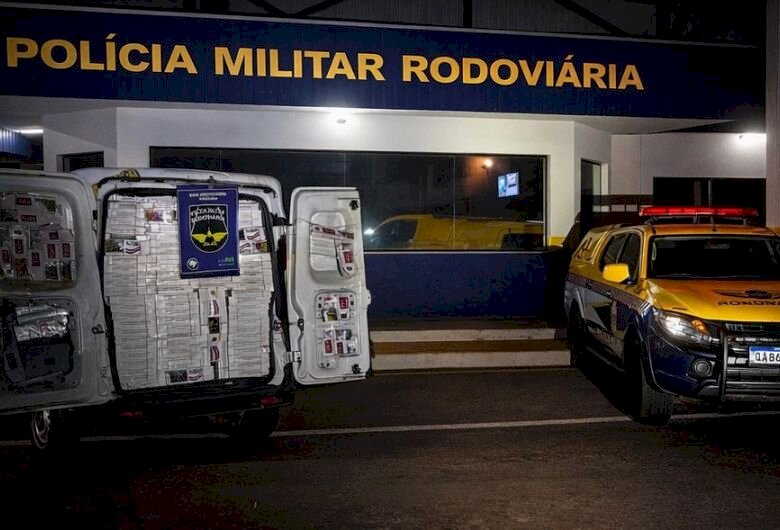 No interior do veículo, os policiais encontraram 2.350 pacotes de cigarros de origem estrangeira (marcas Eight e Palermo), o equivalente a 47 caixas do produto.