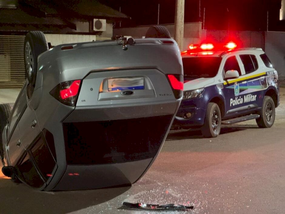 Um acidente envolvendo três veículos deixou um carro capotado na noite desta sexta-feira (27), no Bairro Itapoã, no Conjunto Habitacional Salvador de Souza Lima, em Ivinhema, a 289 km de Campo Grande.