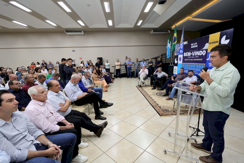 O prefeito Marçal Filho participou de encontro com comerciantes e empresários na Associação Comercial e Empresarial de Dourados em evento que teve como objetivo promover diálogo aberto para apresentação de demandas, troca de ideias e debate sobre pautas estratégicas voltadas ao fortalecimento da economia local. Marçal destacou que estava presente tanto como prefeito quanto como empresário e salientou que a Administração Municipal precisa estar alinhada ao ritmo de expansão da cidade.