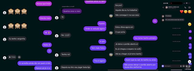 Em um dos casos, o aluno marcou de ir até a casa do professor e pediu para que ele deixasse a porta do local aberta. “Eu já chego e te espero no sofá”.