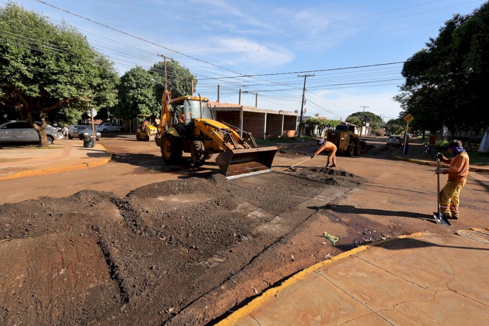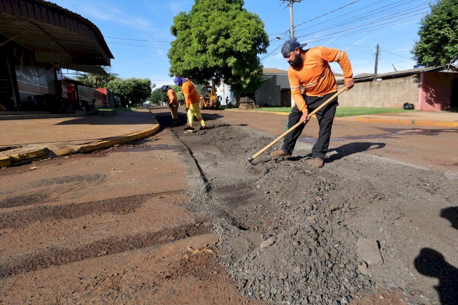 Prefeitura intensifica recuperação asfáltica e avança em quatro bairros de Dourados
